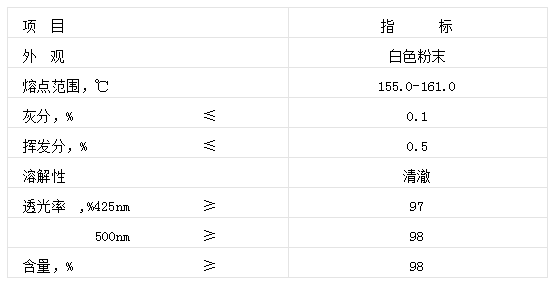本品為白色粉末,熔點155-161℃。可溶于丙酮、甲醇、氯仿,微溶于甲苯,不溶于水。作為受阻酚類抗氧劑,用于有機聚合物,如塑料、合成纖維、粘合劑和彈性體。是一種有效的、無色污的穩定劑,特別適用于聚酰胺聚合物和纖維料。該產品與亞磷酸酯類、硫代酯類抗氧劑及受阻胺類光穩定劑配合使用,有良好的協同作用。用量在0.05%-0.5%之間。
